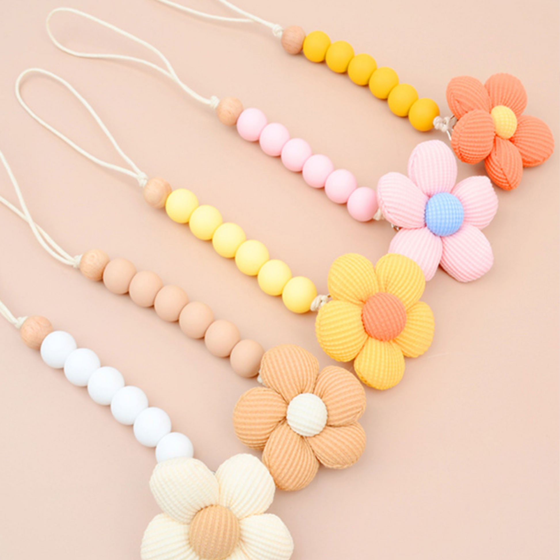 Flower Pacifier Holder – Soft Fabric Strap with Rope Tie